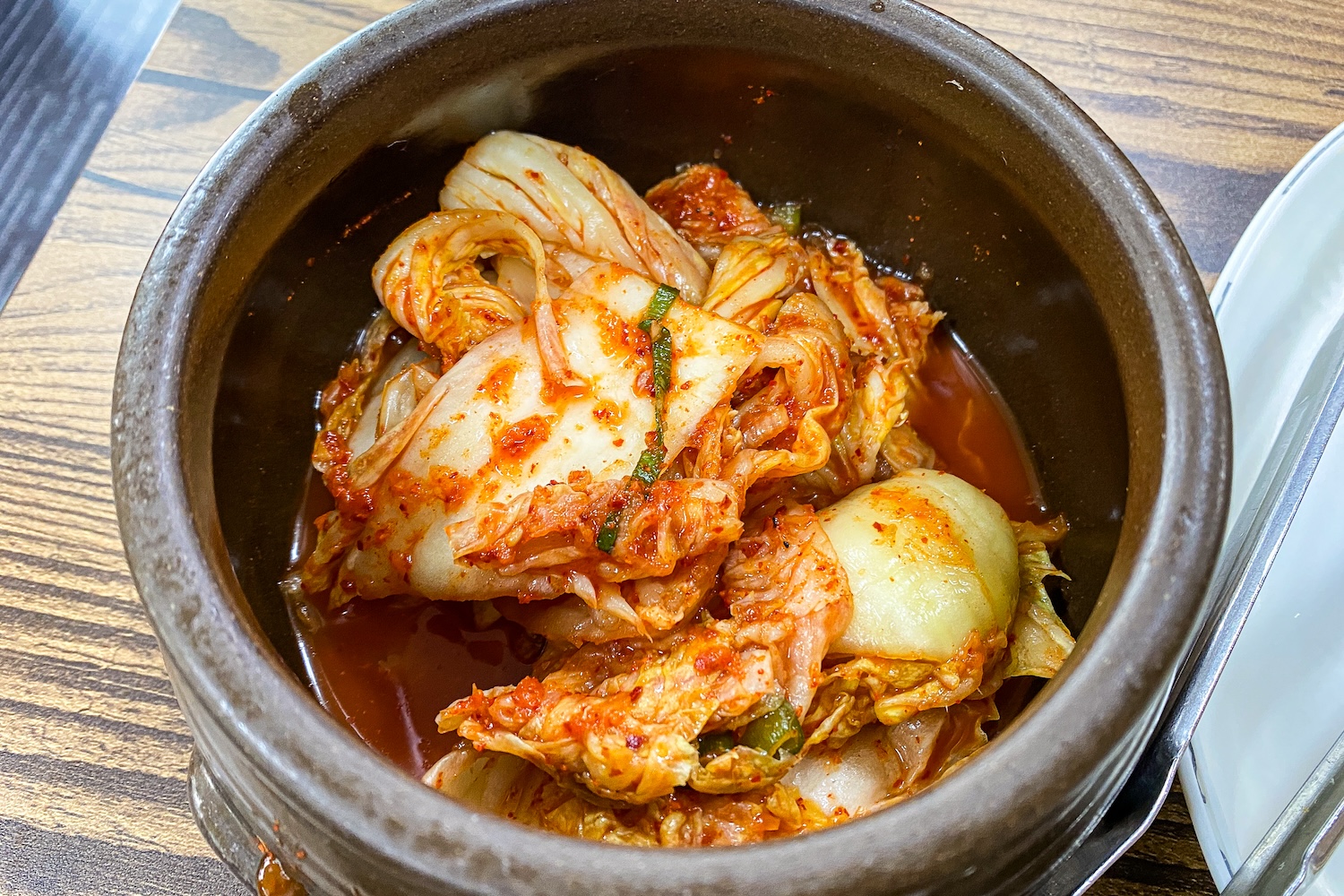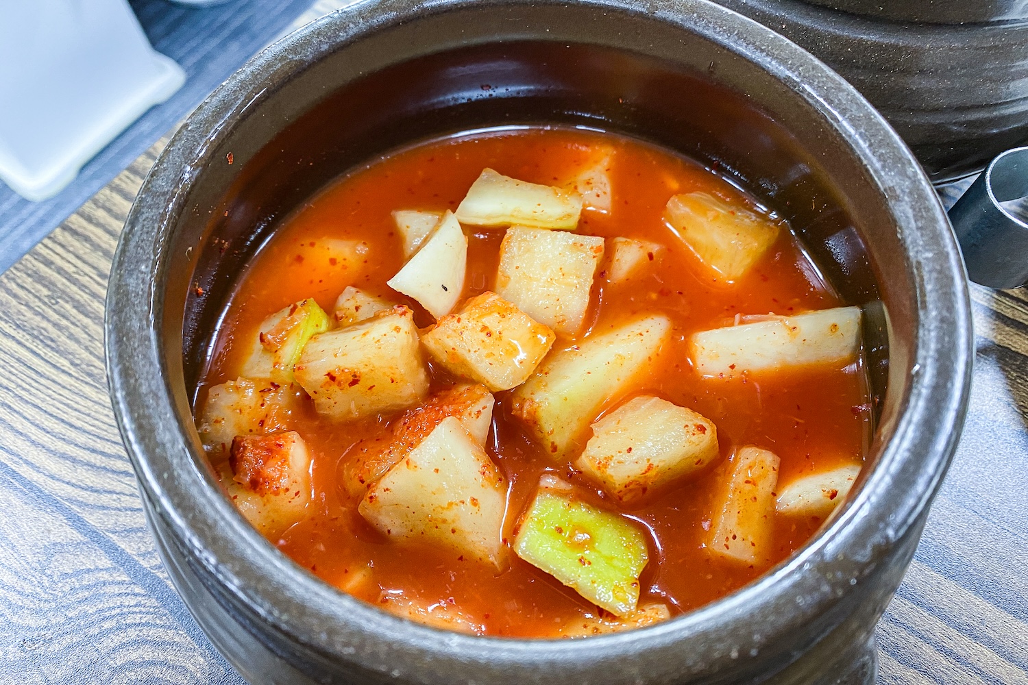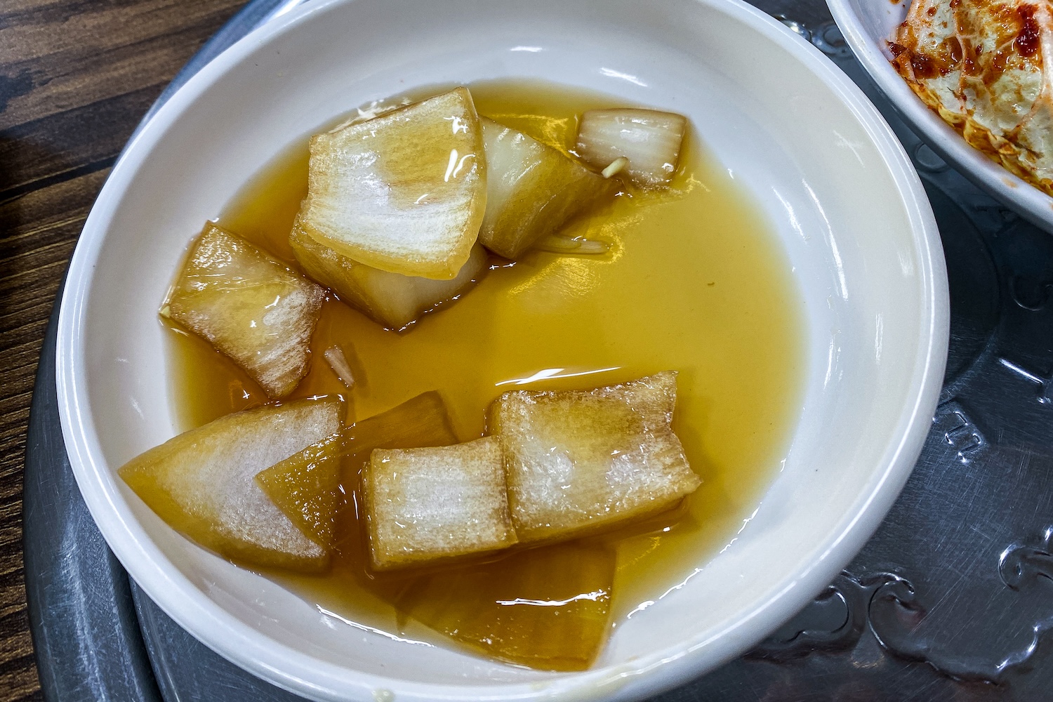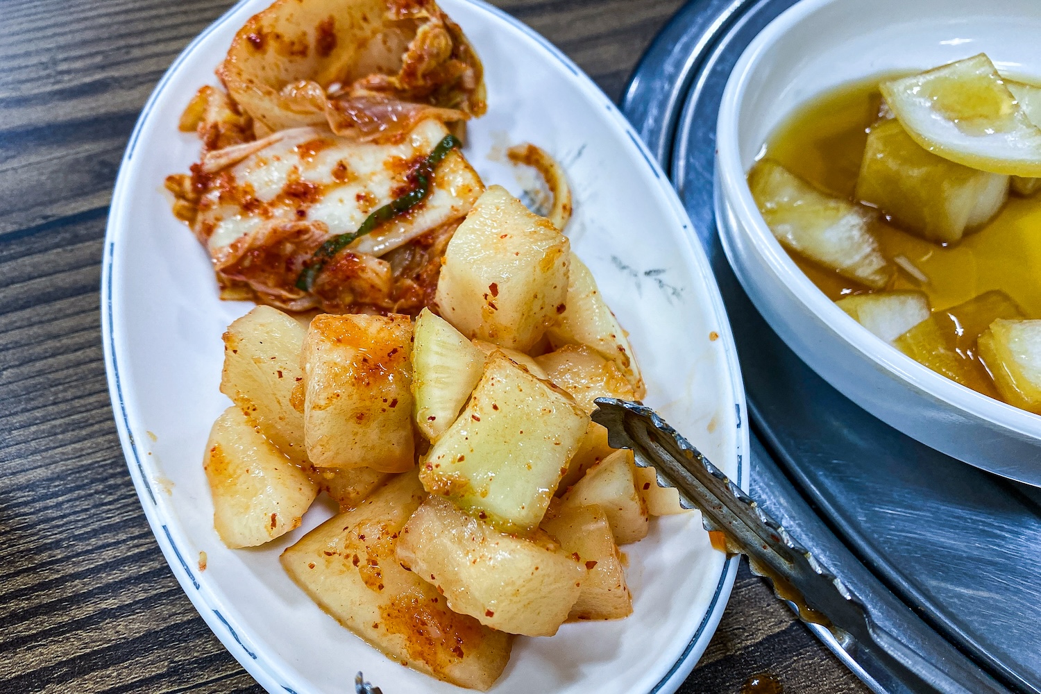 반찬은 김치와 깍두기, 양파절임이 전부