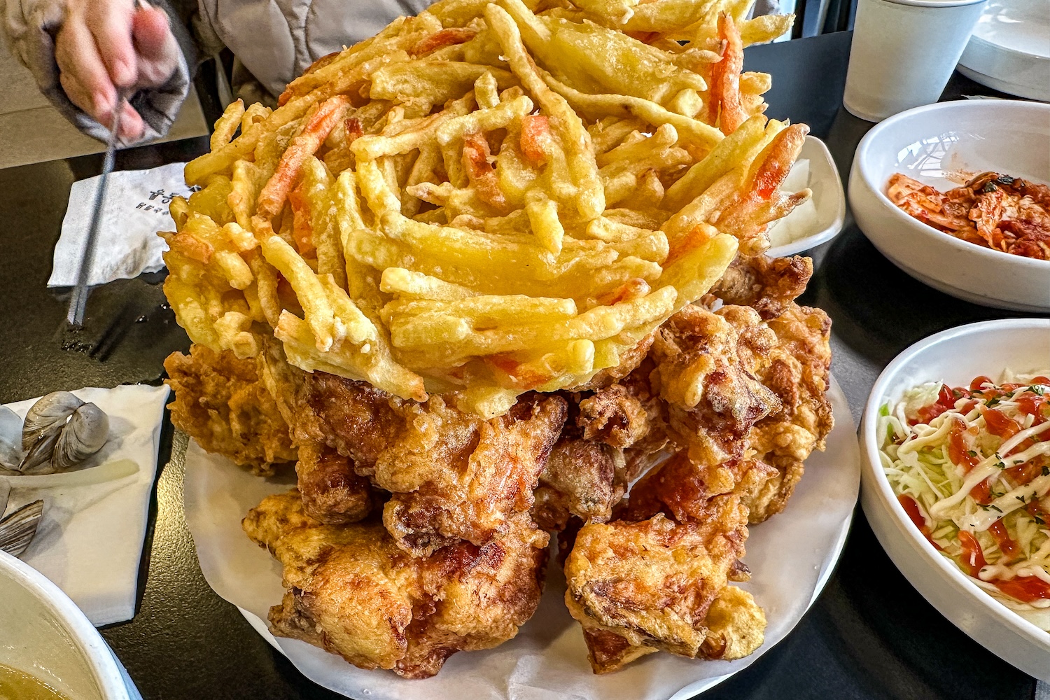 그런데 이어서 나오는 야채튀김치킨의 비주얼에 압도.