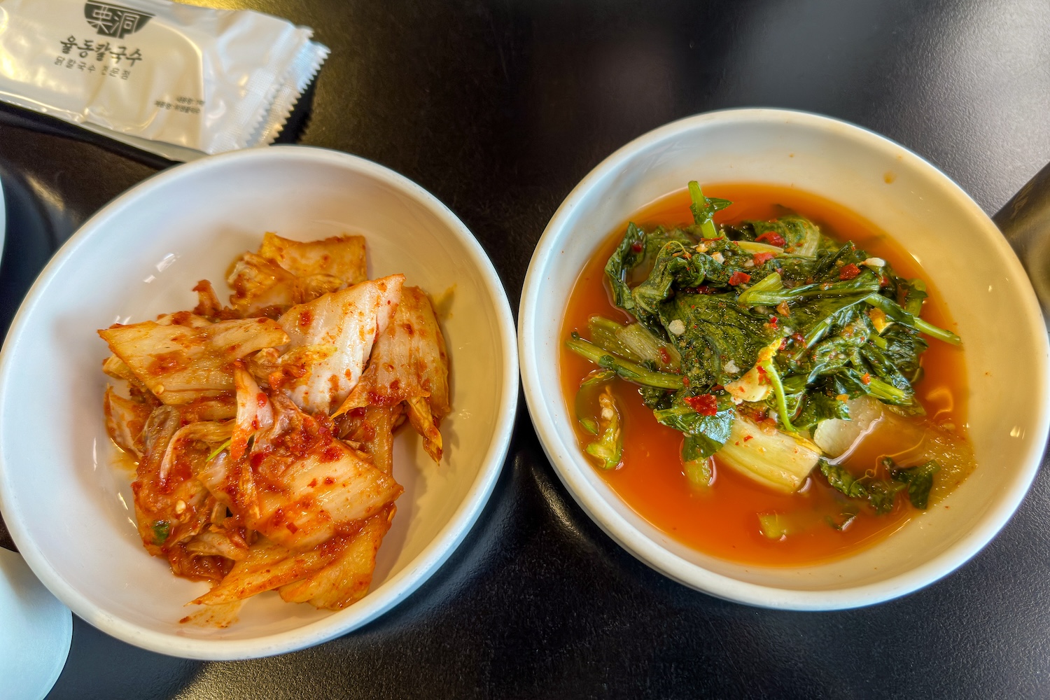반찬이 나오는데 김치가 두 종류가 나온다.