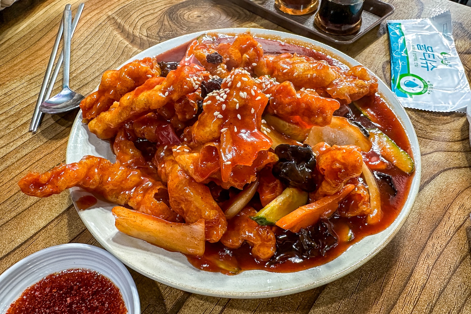 소스가 아주 매콤한게 씹으면 달달했다.