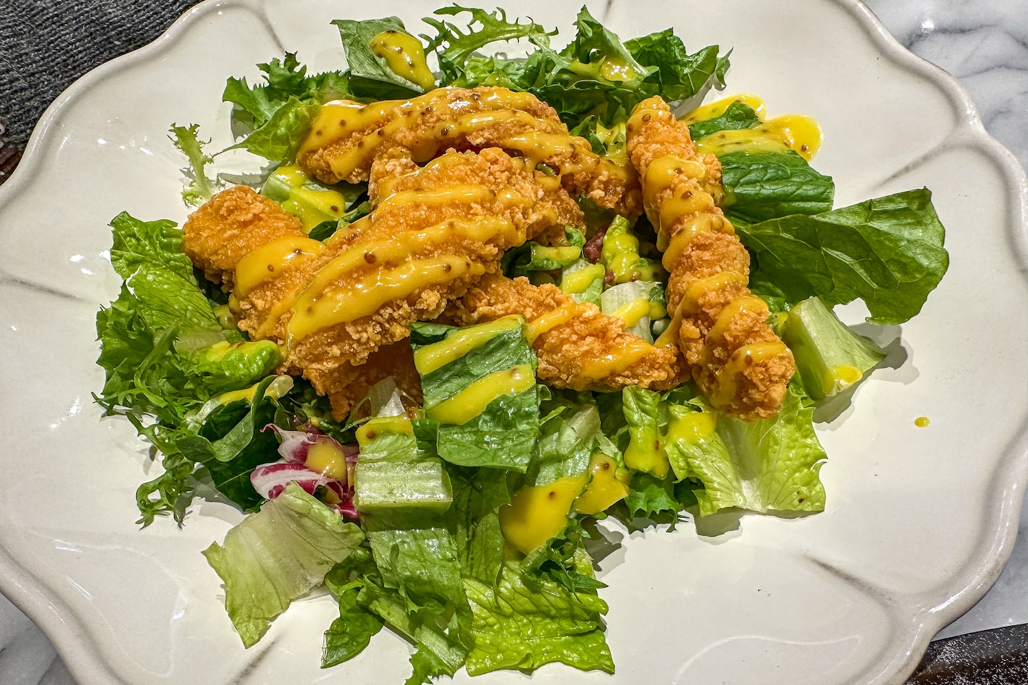 위에 올리는 치킨텐더가 너무 저렴한 느낌