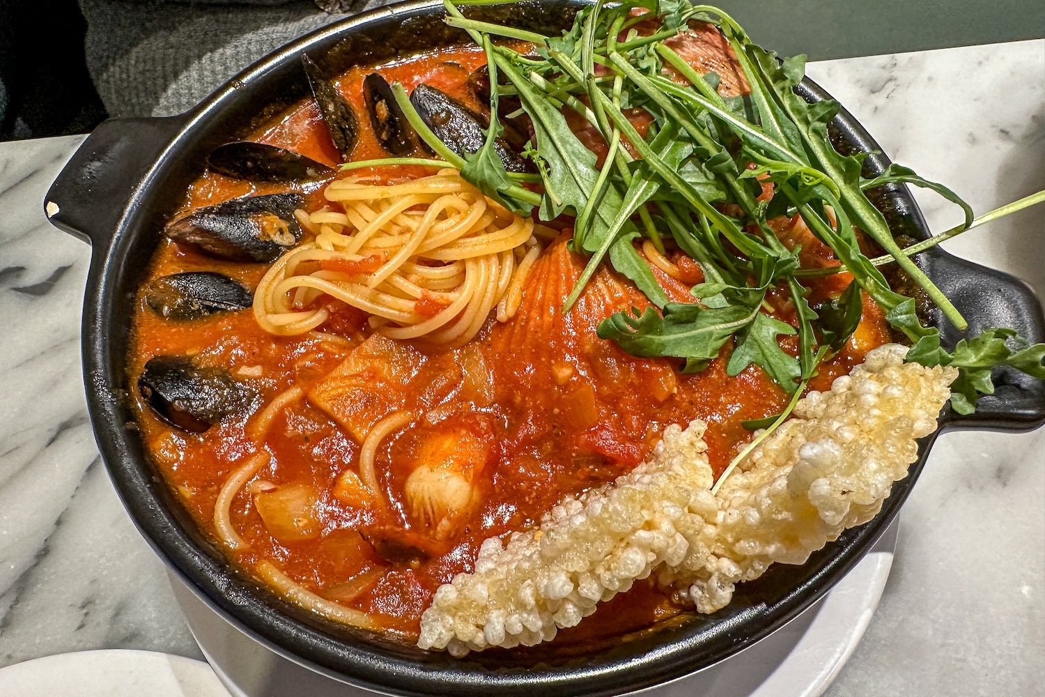 해물파스타인데 ... 저 위에 올려낸 채소가