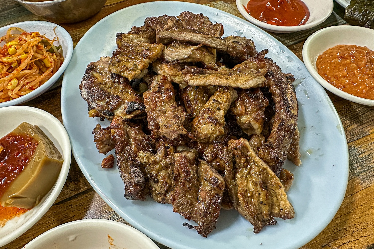 요렇게 연탄에 돼지갈비를 잘 구워준다.