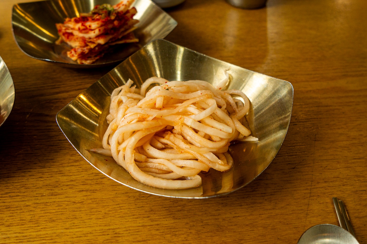방짜유기에 가지런히 담겨 나오는 반찬들