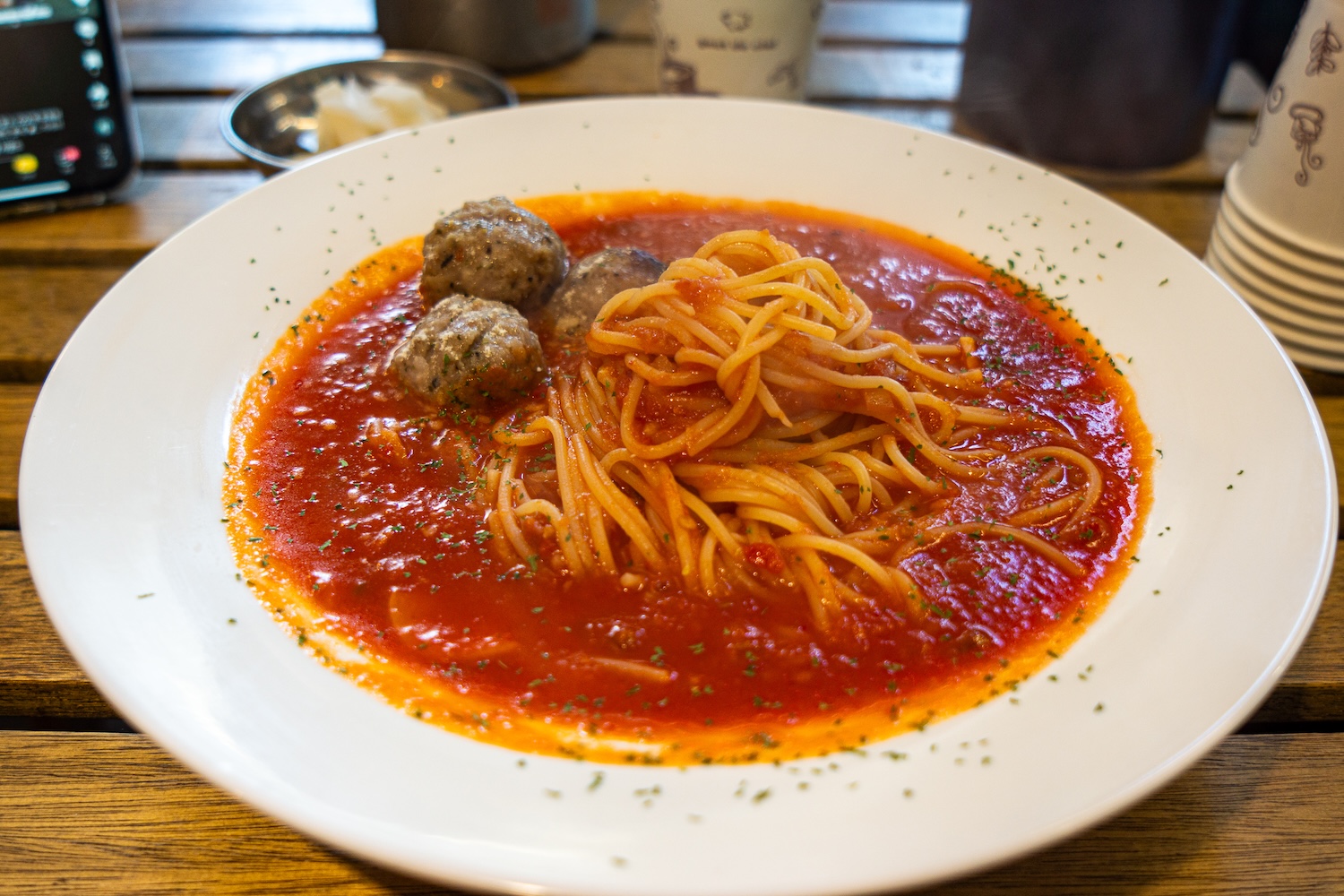 소스 역시 일품이다. 진한 토마토 베이스에 은은한 바질과 마늘 향이 어우러져 미트볼과 환상의 조화를 이룬다. 면은 알 덴테로 삶아져 씹을 때마다 적당한 탄력이 느껴진다. 미트볼과 소스를 면에 골고루 섞어 한 입 맛보면, 각 재료가 어우러져 완벽한 하모니를 이루는 것을 느낄 수 있다.
