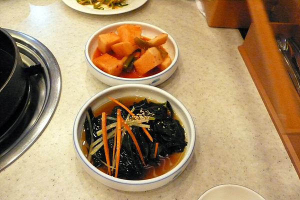 대도식당은 요즘 흔히 볼 수 있는 숯불을 이용하지는 않습니다. 자리를 잡고 앉으면 동그란 쇠로 된 불판이 가스레인지 위로 올라옵니다. 얼핏 보면 뚜껑 없는 솥처럼 보이기도 하는데 생각해보니 일반 철판에 비해 상당한 메리트가 있더군요. 손님에게나 가게에게나 말이죠. 보통 구이 판은 평판이기에 기름이 튀면 주변이 온통 기름투성이가 되는데 이 집은 솥처럼 일정한 높이의 벽이 있어 그나마 주변으로 기름 확산을 방지해주는 역할을 하더군요. 또 하나는 이게 솥의 역할을 하기에 먹은 후 그 솥을 이용해 다른 요리를 할 수 있다는 것입니다. 그리고 고기를 먹으며 솥을 바꿀 필요가 없어 그것도 편하더군요.
