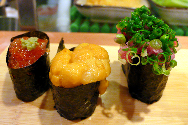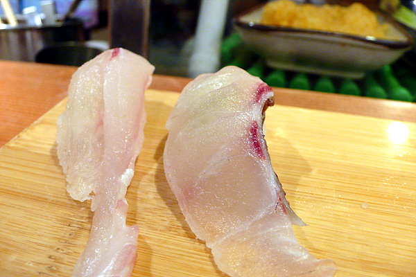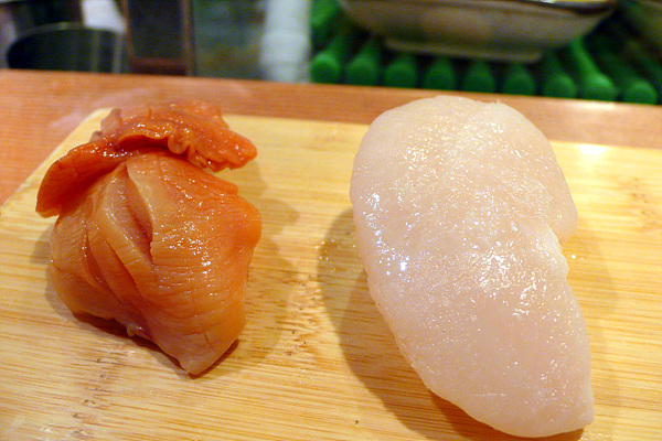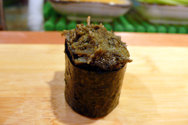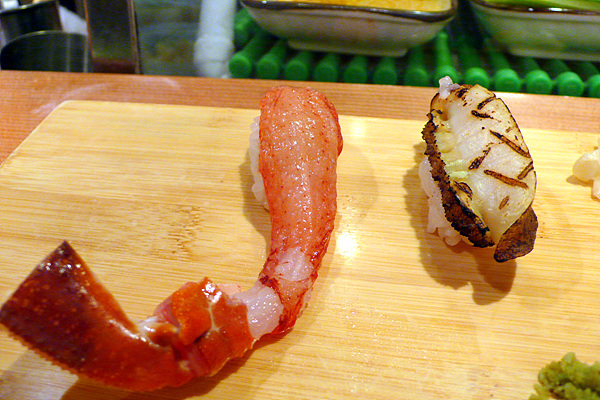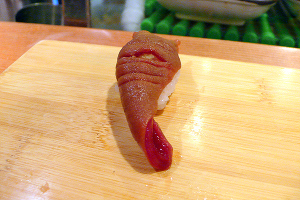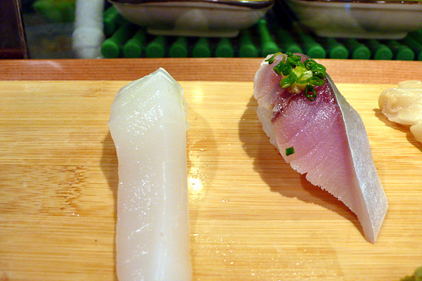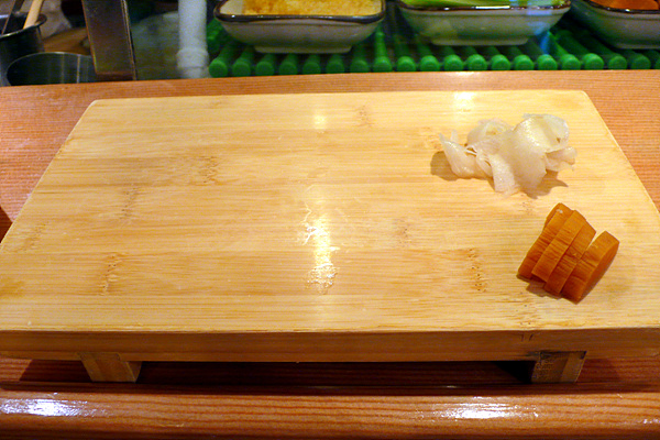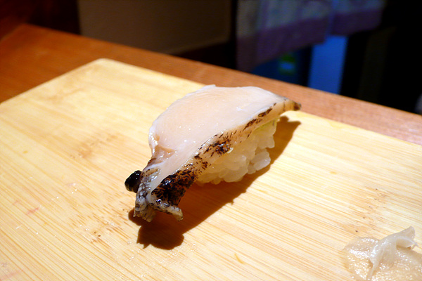 이날은 간신히 1시 예약을 하고 선반에 앉아 초밥 탐험을 시작했습니다. 직접 앞에서 만들어주는 초밥은 한마디로 ‘경쾌합니다.’ 먹는 속도와 만드는 리듬이 만들어내는 묘한 경쾌함이 맛을 살려주죠. 이런 상황을 바로 살아 있는 맛이라고 표현해도 될 듯합니다. 만드는 사람의 손길과 눈빛을 보면서 먹으면 그 맛을 더욱 강하게 느낄 수 있죠. 이것이 회전초밥과 차별화되는 요소라고 생각합니다.