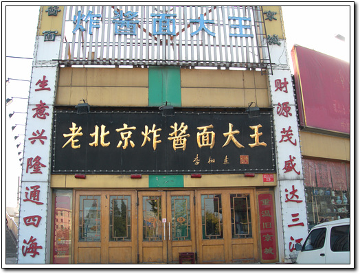 오늘은 먹는 이야기로 바로 '북경 작장면'을 한번 선보이겠습니다. 후배와 함께 조금 늦은 점심이 되어 고민하다가 외국 여성 여행가가 추천한 '북경 작장면대왕'이라는 집을 가보기로 했습니다. 어렵게 택시기사에게 영어 이야기하면서 책을 보여주며 간신히 찾아갔죠. 정말 기적이었습니다. 영어 못 알아 듣기로 유명한 중국에서 손짓 발짓으로 특정 음식점을 찾아가다니 말이죠. 찾아간 곳은 바로 '老北京炸酱面大王'이라는 정말 거창한 이름을 가진 전통 중국 음식을 파는 식당이었습니다.