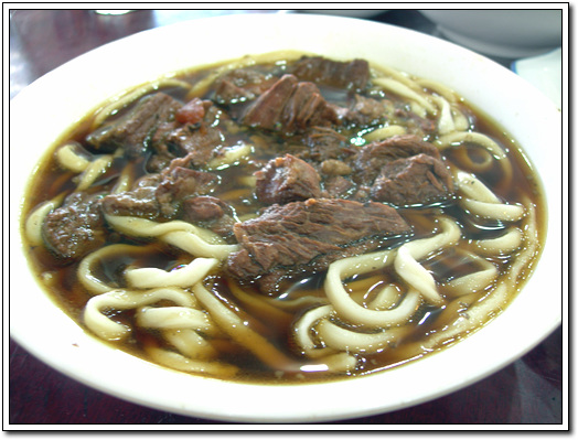 먼저 나온 음식은 바로 우육탕면. 진한 육수에 수타면과 장조림 같은 소고기를 넣은 아주 간단한 요리였습니다. 정말 왕 느끼하더군요. 면은 쫄깃쫄깃 맛이었지만, 국물이 우리의 상식처럼 시원하기 보다는 장조림에 물을 타서 끓인 것처럼 느끼했습니다. 더구나 고기도 퍽퍽 하여 완전히 실패작... ㅜ.ㅜ 유일하게 북경에서 먹은 요리 중 남겼습니다... ^^