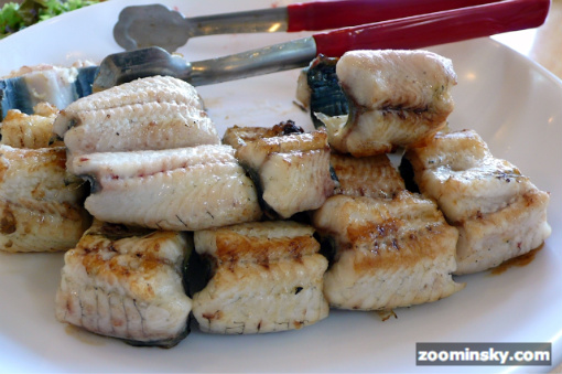 이것저것 여러 반찬이 나오는데 딱히 먹을만한 것은 없지만 대나무 찰밥은 맛있었습니다. 중요한 것은 장어 맛이겠죠. 숯불이 강해서 그런지 좀 빨리 타더군요. 지금까지 여러 장어집을 다녀봤지만 이렇게 타버리는 집은 이 집이 처음이었던 것 같습니다. 지나가는 종업원이 탄다고 막 뭐라고 해서.. 좀 난감하더군요.