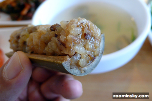 이것저것 여러 반찬이 나오는데 딱히 먹을만한 것은 없지만 대나무 찰밥은 맛있었습니다. 중요한 것은 장어 맛이겠죠. 숯불이 강해서 그런지 좀 빨리 타더군요. 지금까지 여러 장어집을 다녀봤지만 이렇게 타버리는 집은 이 집이 처음이었던 것 같습니다. 지나가는 종업원이 탄다고 막 뭐라고 해서.. 좀 난감하더군요.