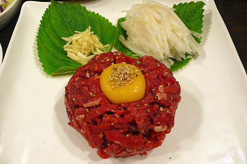 기름기 없는 우둔살을 얇게 저민 후 가늘게 채를 썰고 배와 마늘, 간장과 깨소금 그리고 참기름에 갖은 양념으로 맛나게 버무려 먹는 <육회>. 웬만큼 잘하는 곳이 아니라면 그저 그런 맛이고 간혹 뷔페에 가면 얼어버린 육회가 입맛을 버리는 경우가 있죠. 이날 회식했던 <화로사랑 서초삼성타운점>의 <육회>는 아주 감칠맛이 제대로였습니다.